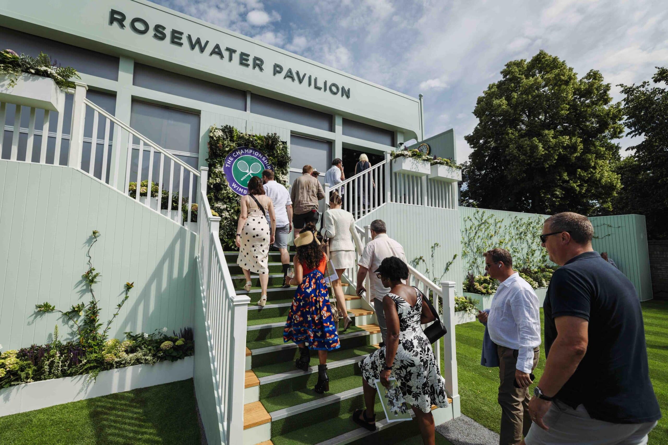 The Rosewater Pavilion offers a premium hospitality experience at The Championships, Wimbledon, with private tables for 2–12 guests, informal lounges and private areas to enjoy throughout the day.