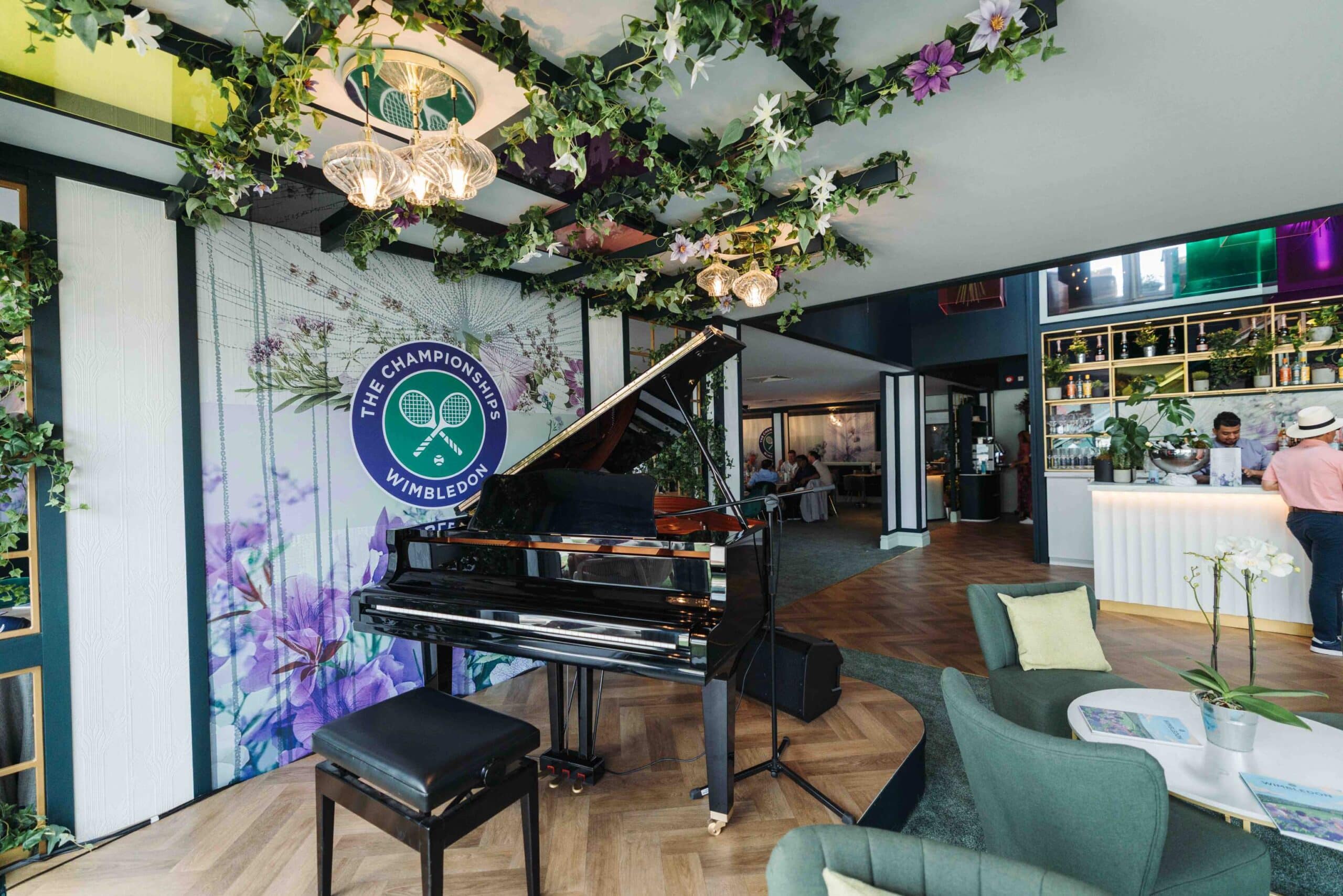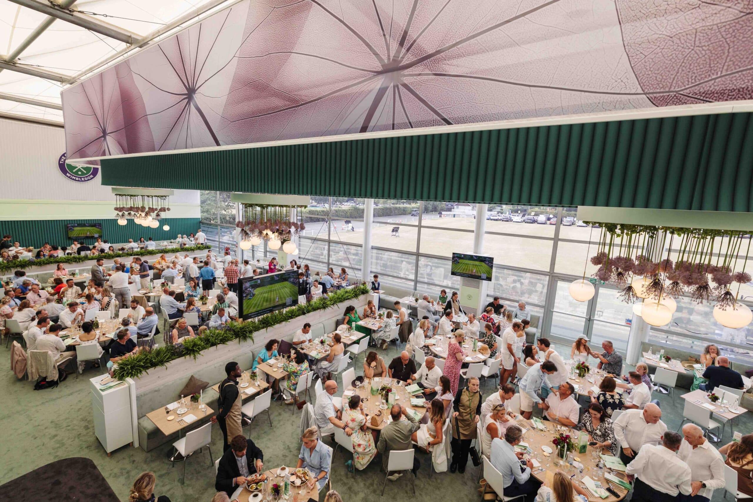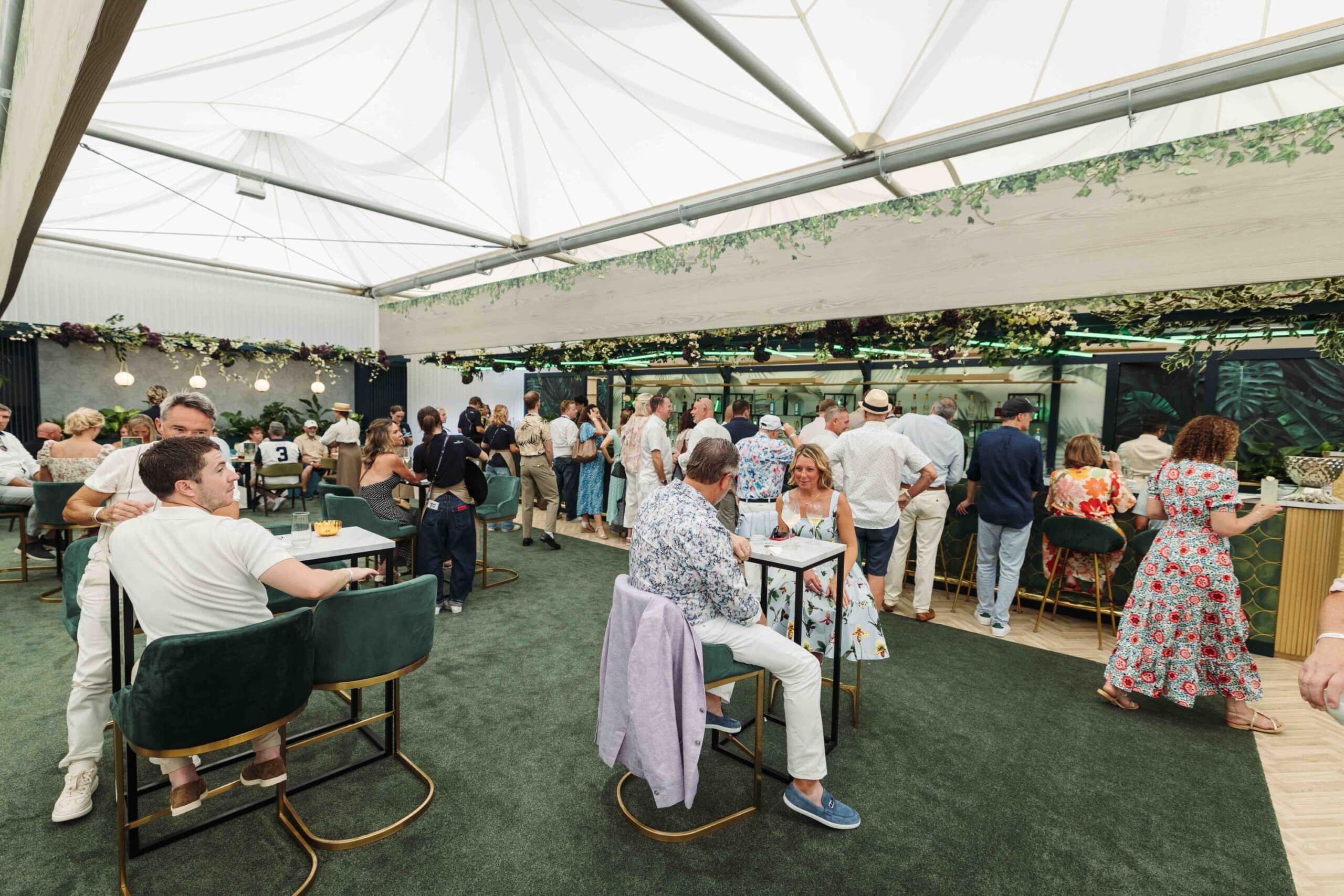 The experience extends outdoors, with a garden space to enjoy summer sunshine, bespoke cocktails and live music before heading to the nearby courts to watch the action unfold.
